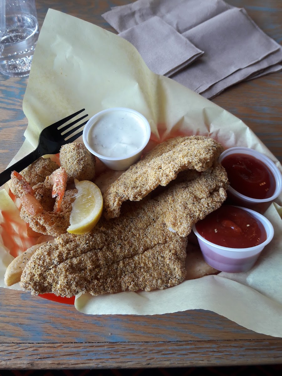 Catfish Broiled Shrimp Fried Pickles and Fried Jalapenos